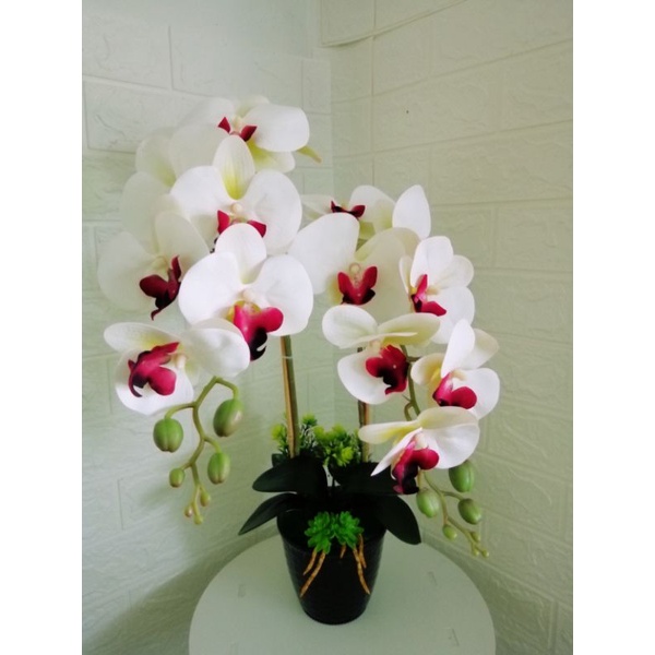 Dua orkid putih di dalam pasu perak di atas meja makan. Gubahan bunga hiasan orkid latex pasu melamin gold hiasan meja makan. Browse a range of decorative bunga orkid hiasan meja items at lazada.